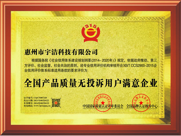 全國產品質量無投訴用戶滿意企業